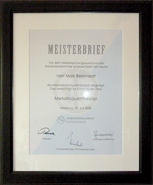 Maik Bernhardt ist seit dem Jahr 2008 Metallbauer-meister und hat in den Jahren vor der Unter-nehmensgründung viel Erfahrung im Bereich des Edelstahl-Metallbaus gesammelt.